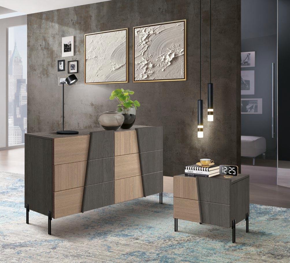 Comò 3 cassetti in FRASSINO con guide ammortizzate, maniglie legno e piedini metallo.