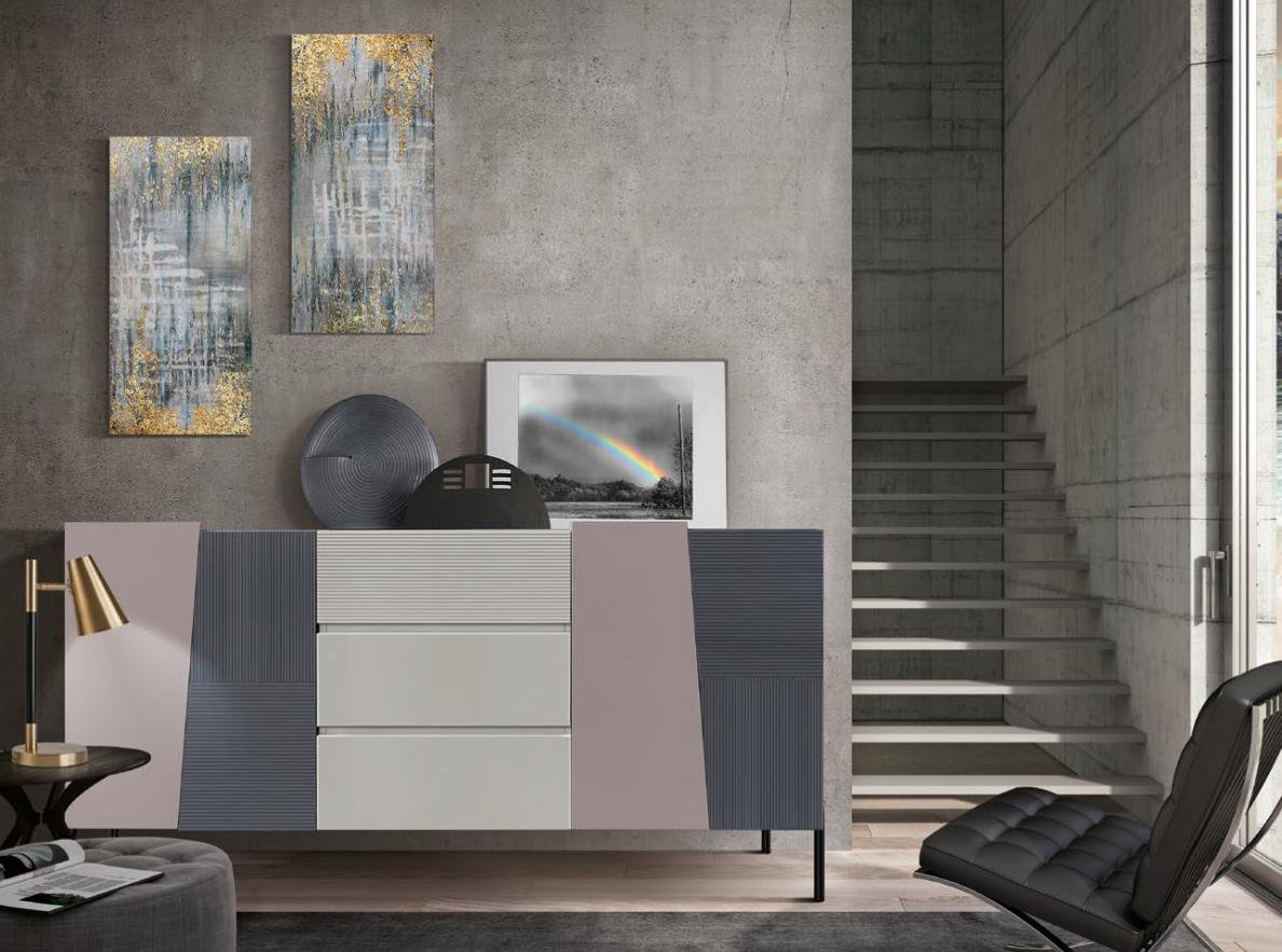Credenza 2 porte con 3 cassetti e piedino in metallo