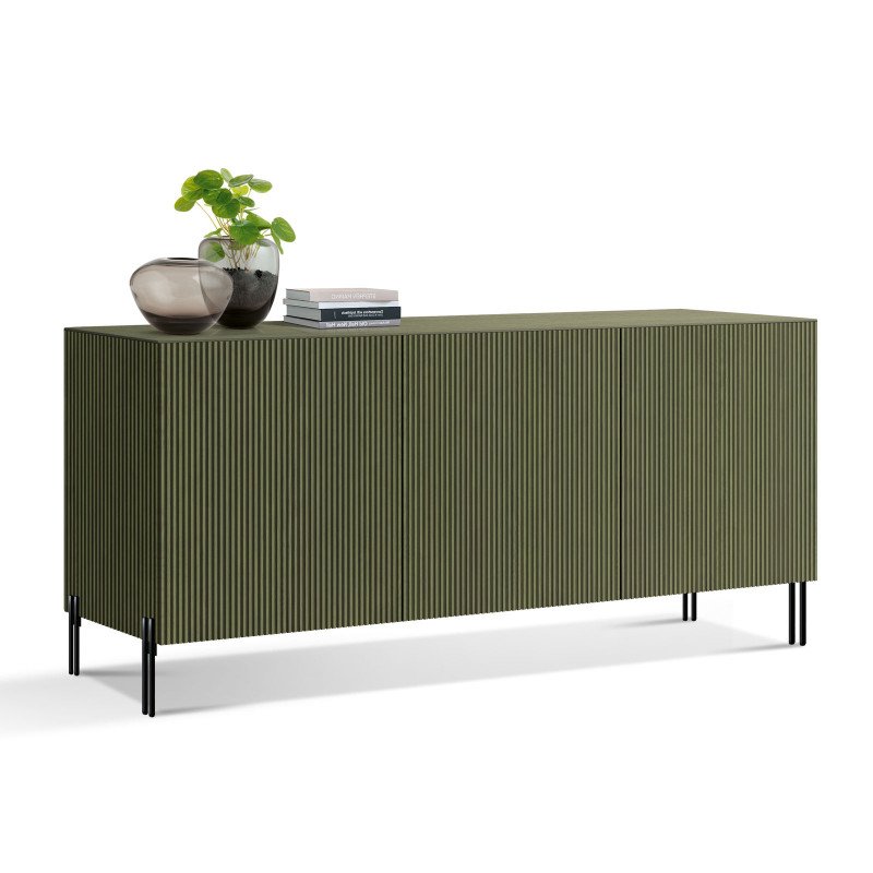 Credenza cannettata 3p. con piedini in metallo