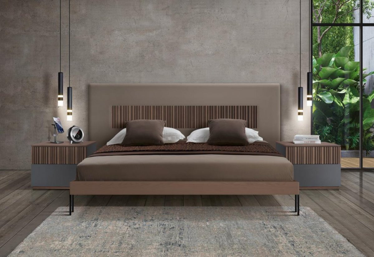 Letto matrimoniale con testata legno con inserti in FRASSINO.