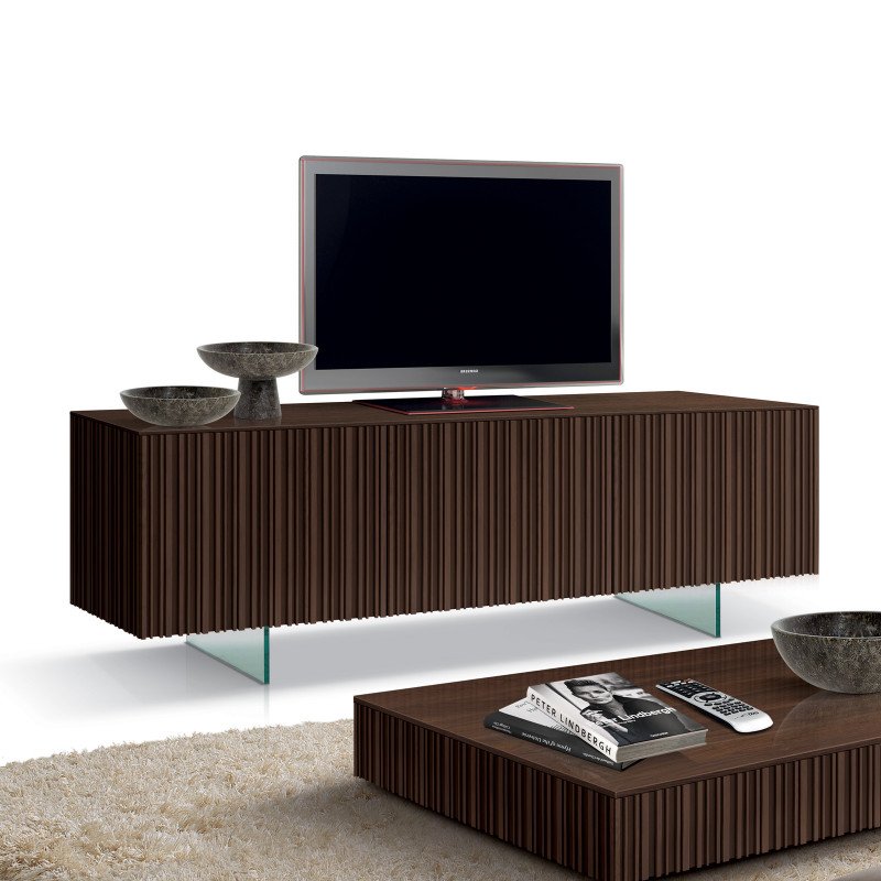 Porta tv rigato 3p. gamba vetro