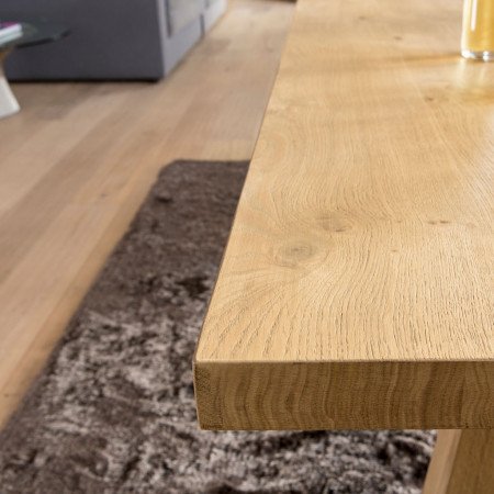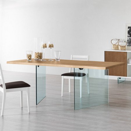 Tavolo rettangolare gambe in cristallo e piano in rovere con BORDO DIRITTO