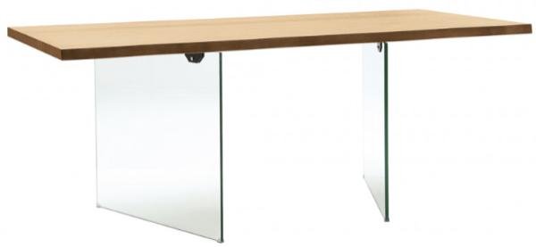 Tavolo rettangolare gambe in cristallo e piano in rovere con BORDO DIRITTO