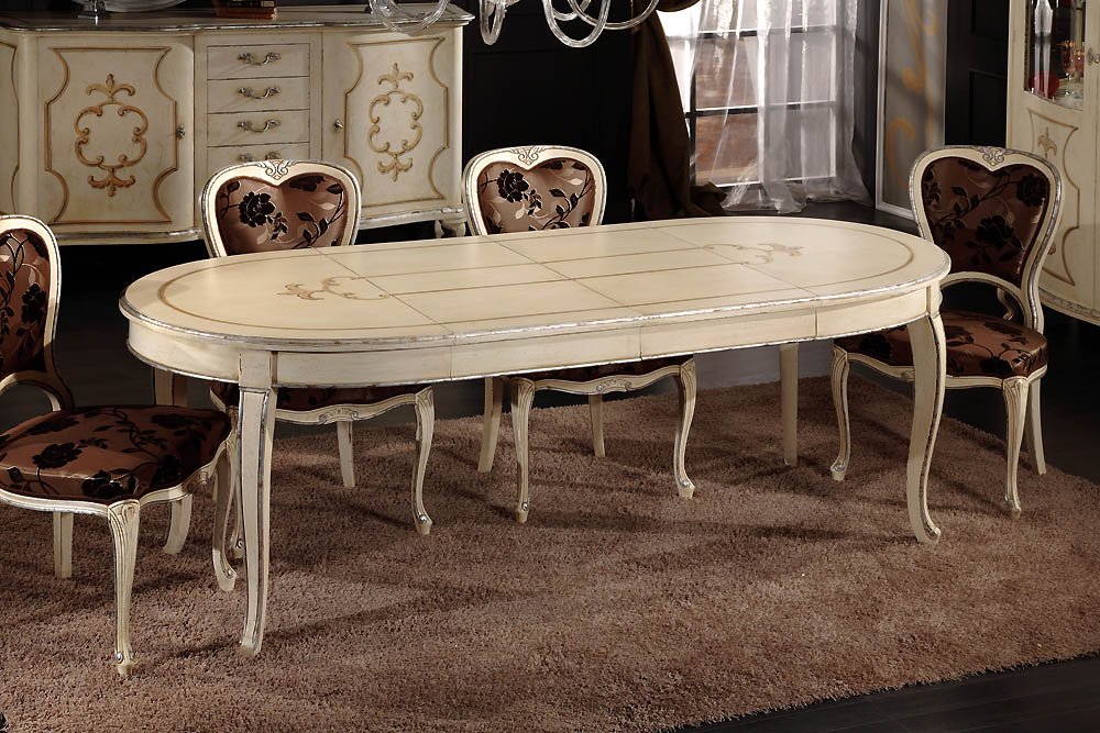 Tavolo ovale laccato decorato